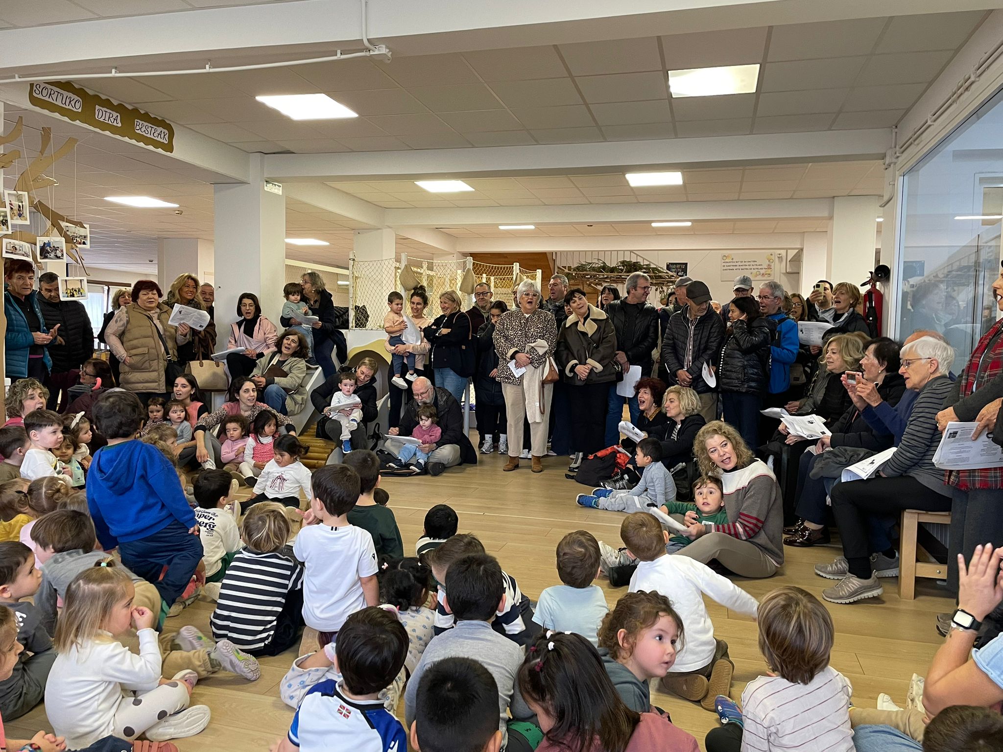 Hau horrela, atzo goizean HHko eremura aiton-amonak etorri ziren biloben ondoan abestera.