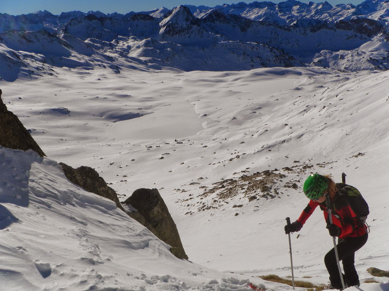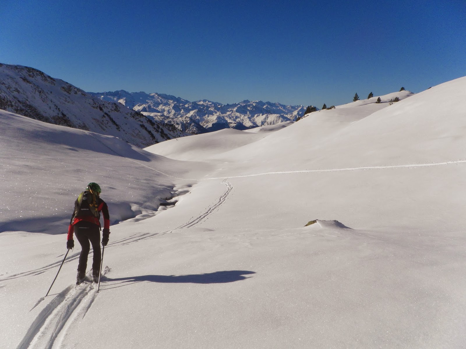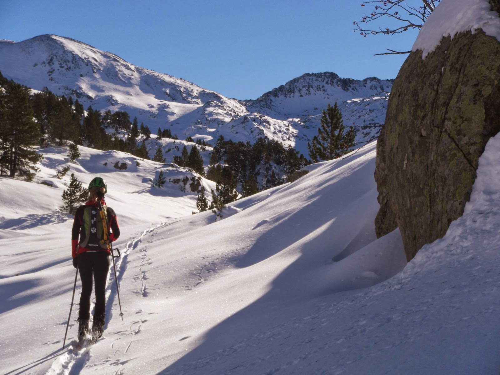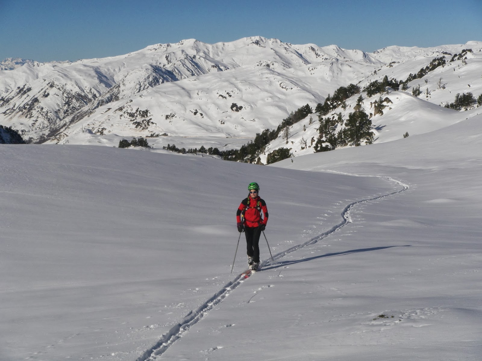 Horretarako Aran Bailarara jo dugu, elur kondizio onenen bila. Zenbait zeharkaldi egin ditugu inguruko mendietara, denboraldiari neurria hartzen joateko eta aurreneko irristaden sentzazioez gozatzeko.