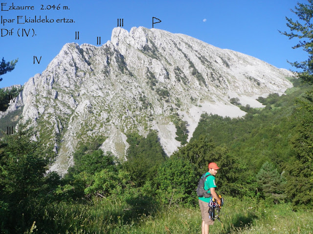 Jai egun batzuk hartuz, uztailaren 25an Zuriza aldera jo genuen, Argibielako mendatera. Bertan lo egin ostean uztailaren 26an, ostiralez, Ezkaurreko Ipar Ekialdeko ertza eskalatu genuen. Ez da zailtasun handiko ertza, baiña bai luzea eta argi ibili beharrekoa, pasarte bat baiño gehiagotan amildegi bikainak bait ditu. Bidearen zatirik nagusiena "ensamble" moduan egin genuen, aurkitzen genituen iltzeetan aseguratuz edo friend eta fisureroak erabiliz. Gehien zutitzen den zatian, 50 bat metroko luze bat ere egin genuen, txapa pare batekin montatutako reunio batetik. Ondoren, 20 metro inguruko rapela. Hemendik aurrerakoa II. eta III. mailako igoera tontorreraino doazen maldak zapaldu arte.