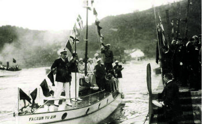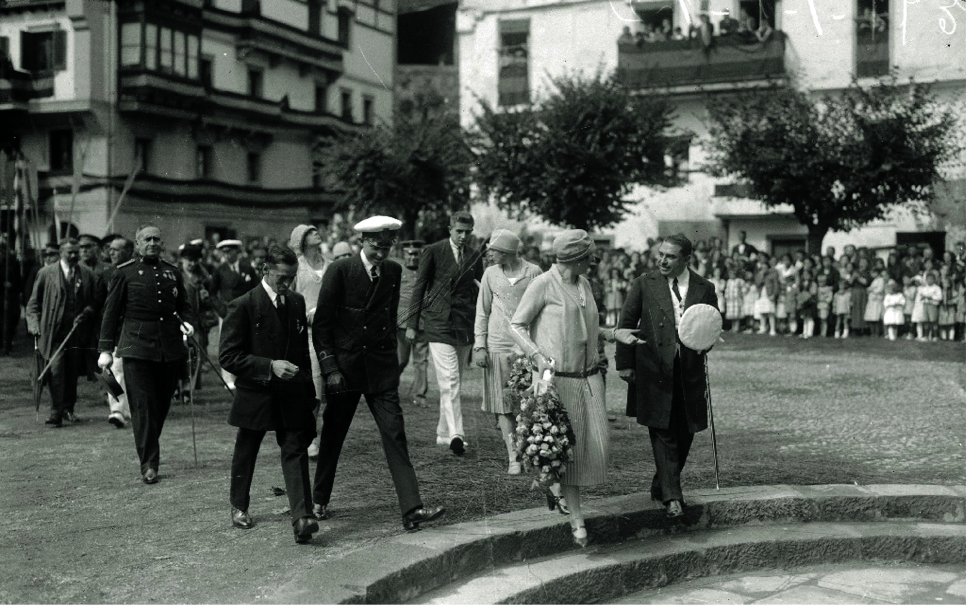 1925eko irail bukaerako egun batean bigarren estreinaldia izan zuen herriko plazak, bisitari ospetsuekin. Espainiako erregina Victoria Eugenia herriratu zen, Alfontso XIII.a erregearen emaztea eta oraingoaren birramona. Fackun Tu Zin yatean etorri ziren Orioko plaza ondoko moilaraino, Donostiatik abiatuta, erregina eta familia. Plazan meza entzun, eta hiru bandera bedeinkatu zituzten: herrikoa, Somatenarena eta irailean Kontxan irabazitakoa.