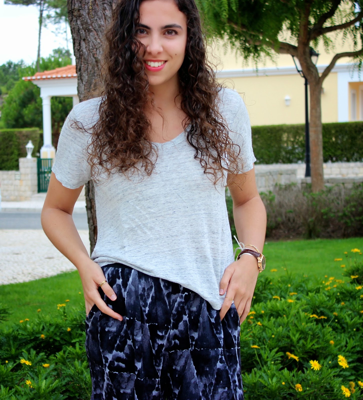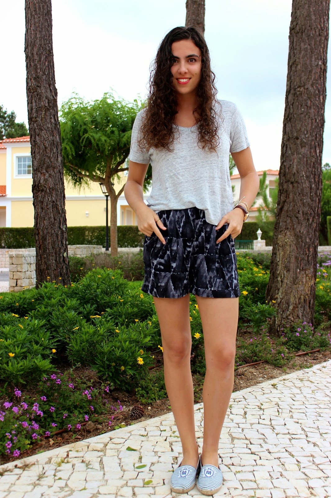 Hilabete batzuk neramatzan ezer igo gabe, eta azkenean hemen naiz. Galtza motzak janzteko gogoa nuen aspalditik, hondartzara joateko gogoa ere, eta orain hori egin dezaket! Portugalen jantzi nuen konjuntoa erakusten dizuet gaur. Chanel, Valentino eta Loewe bezalako etxe handiek alpargatak diseinatu dituzte. Nik ere alpargata batzuk erosi nahi nituen, eta hauek izugarri gustatu zitzaizkidan. Konjunto honetan, beraz, alpargatak dira protagonistak. Galtza motzen estanpatua eta alpargatena ondo konbinatzen direla pentsatzen dut, hori dela eta kamiseta sinple bat janztea erabaki dut. Zer iruditzen zaizue? Eskerrik asko zuen bisitengatik eta iruzkinengatik! Camiseta / Shirt: Zara Shorts: American Vintage Alpargatas / Espadrille: Massimo Dutti Reloj / Watch: Hugo Boss Anillo / Ring: Tous