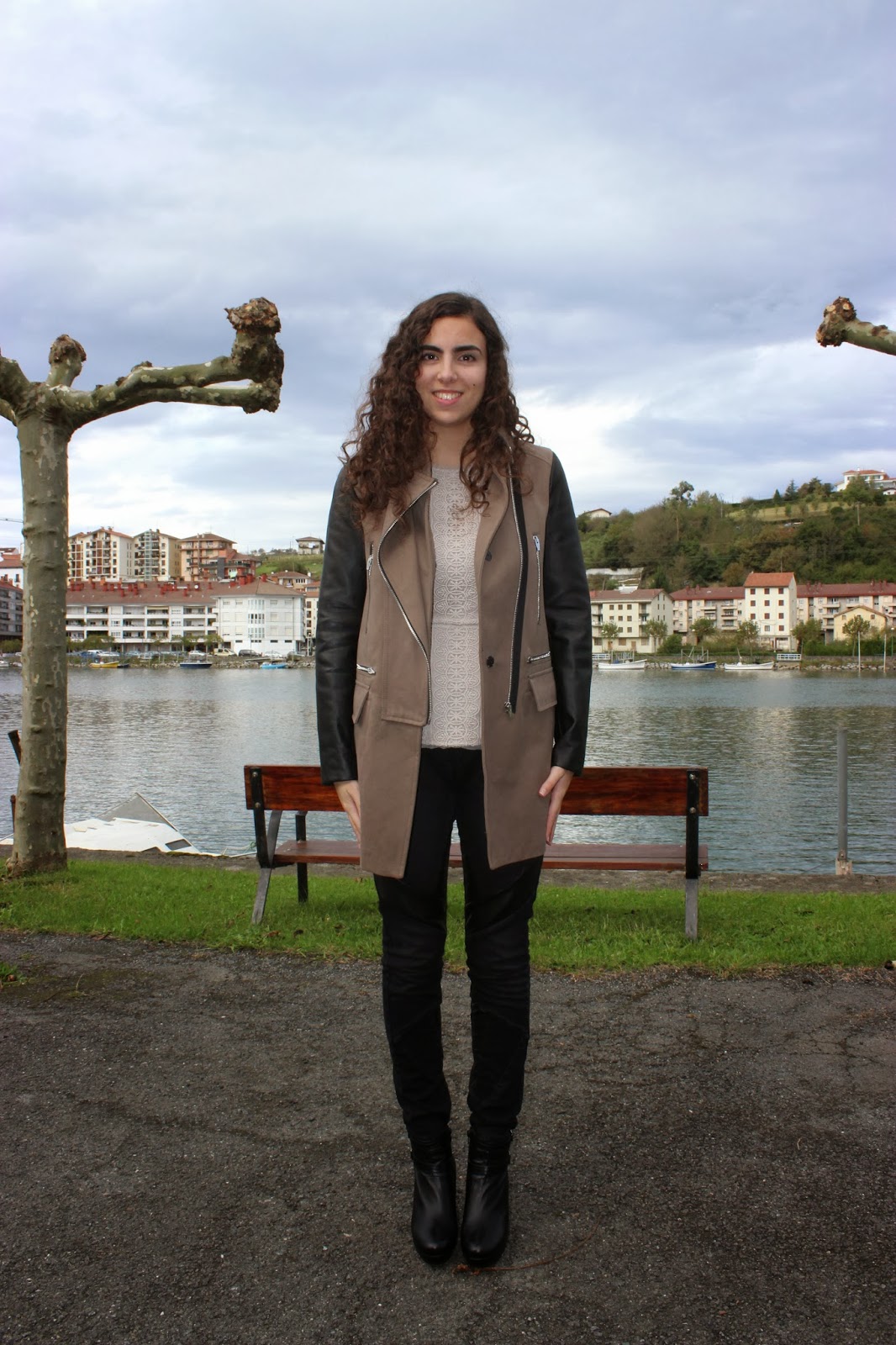 Kaixo! Denbora da ez dudala ezer igo blogera, hori dela eta gaur argazkiak atera eta hemen naiz. Txaketa hau estreinatzeko gogoa nuen baina eguraldiak ez zidan uzten. Izugarri gustatzen zaizkit larruzko detaileak. Horregatik konbinatu dut txaketa larruzko detaileak dituen galtzarekin. Konjuntoa osatzeko parpailazko blusa bat eta takoidun botin beltzak jantzi ditut. Zer iruditzen zaizue?