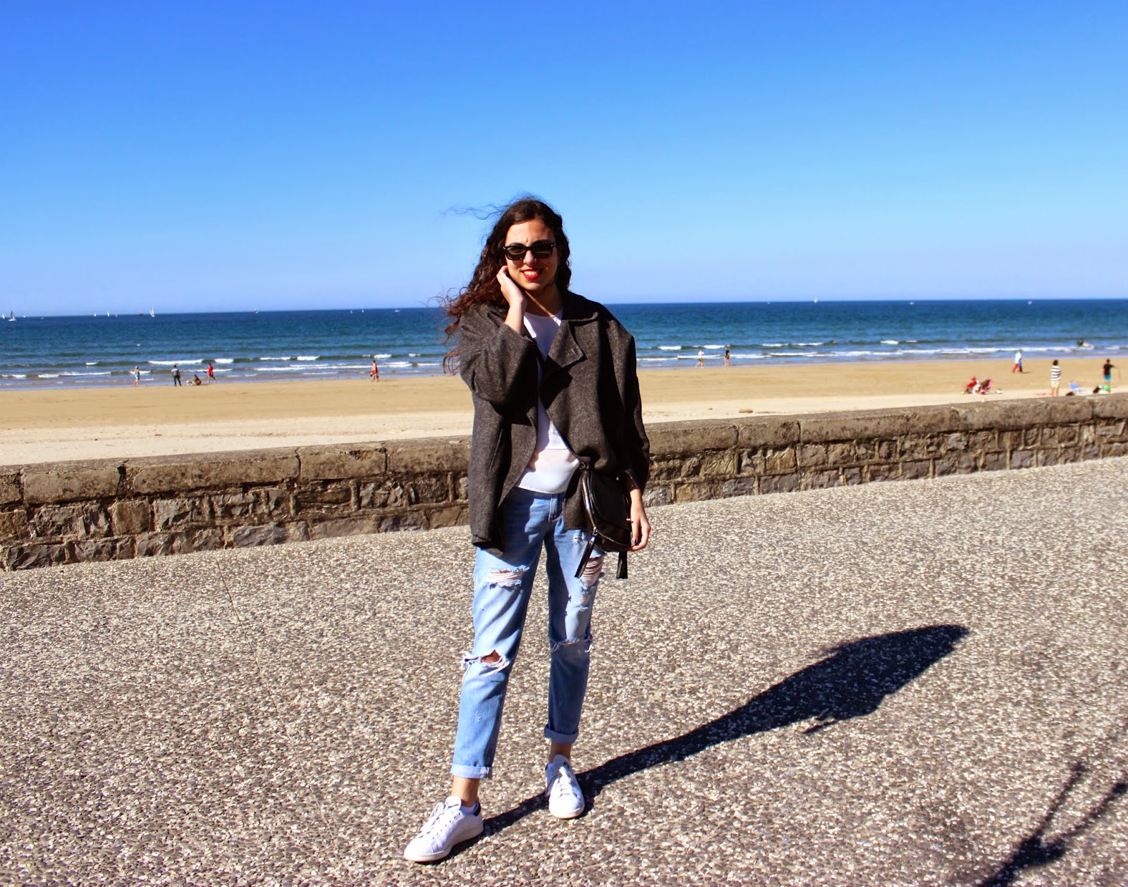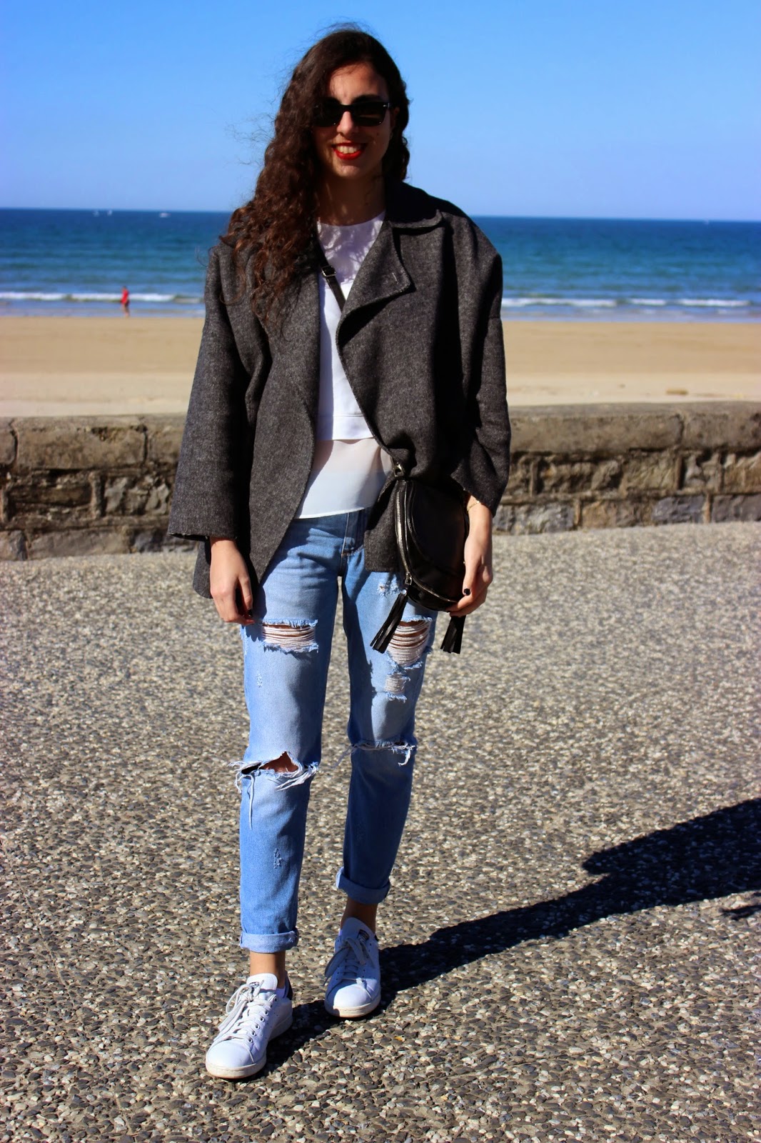 Eguraldi ona ikusita, nire lagunek eta nik Hendaiara egun pasa joatea erabaki dugu. Eguna hondartzan igaro dugu, a ze eguaraldia! Konjunto sinplea eta udakoa aukeratu dut, oraindik ez baitu shortak erabiltzeko eguraldia egiten. Boyfriend galtzak blusa zuri batekin janztea erabaki dut. Izugarri gustatzen zait zuria eta grisaren arteko konbinazioa, hori dela eta Stan Smith zapatilak eta txaketa grisa janztea erabaki dut. Eskerrik asko zuen bisitengatik eta zuen iruzkinengatik! Abrigo / Coat: Zara Blusa / Blouse: Zara