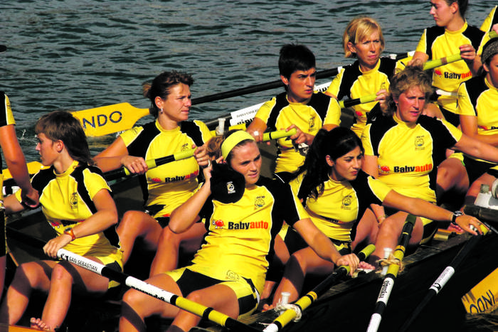 Lehenengo urteak ez ditut oso garbi gogoratzen, egia esan. Badakit entrenatzera joaten nintzela eta beti niri laguntzeko prest zegoela jendea; izan ere, nire adineko bakarra nintzen klubean, eta ia beti bakarrik entrenatzen nuen uretan, skiff izeneko modalitatean. Jose Luis Gozategi, Antonio Alde, nire osaba… Osabarekin hasi ziren berriro banderak irabazten, gainera, eta mirespen horrekin, traineruari begira, –gizonezkoena bakarrik zegoen momentu hartan, noski–, ilusio handia nuen ibaian arraunean ibiltzeko. Patxi Francesek orain dela urte batzuk esan zidan flipatu egiten zuela nirekin, 11 urte bakarrik nituelako. Egia esan, oso oroitzapen politak ditut.
