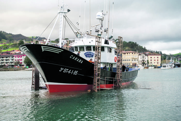 Zapotan eta hegaluzetan ibiltzen den Bermeoko (Bizkaia) Caraba itsasontziarekin aritu dira lanean azken bi hilabeteetan Xuain, eta azaroaren 17an uretaratu zuten. Dezenteko eraberritzea egin diote: motorra konpondu, jela egiteko makina eta nebera berriak jarri, aire konprimituarekin eta hondarrarekin garbitu edo txorreatu, hainbat zati txapa-berritu, eta goitik behera margotu. Irudian, Xuai ontzitegitik erriora uretaratu zuten momentua.