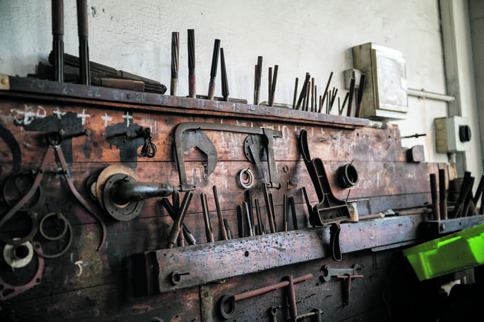 Arostegi tailerrean zer ez dago! Tamaina guztietako piezak eta moldeak, historia handidun makinak... Beste pieza batzuk, berriz, zaharrak dira soilik, baina horiek ere badira baliotsuak beren erara: "Itsasontziek, kanpaina betean matxuraren bat baldin badute, berehala behar izaten dute konpontzea berriz itsasoratzeko; ezin izaten dugu astebete galdu pieza baten zain. Halakoetan, momentuko aterabidea izaten da pieza zaharra jartzea; eta gero, gerokoak".