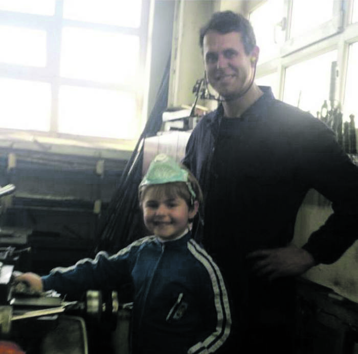 Arostegi tailerrak lau belaunaldiz eutsi dio ofizioari: Aritz Arostegiren birraitonak aitonari irakatsi zion itsasontziei buruz jakin beharreko guztia; aitonak, semeari; eta semeak, Aritzi. Azken horrek 16 urteko semea dauka, Ibai, eta badirudi soka ez dela etengo, uda beraiekin igaro baitu tailerrean, praktikak egiten. "Masterrak horrela ateratzen dira", esan du aitak, Aritz Arostegik. "Oraingoz nahi du gurekin lan egin, eta ez diogu ilusioa kenduko", esan du, irribarretsu. Argazkian, aita-semeak Ibaik 9 urte zituenean.