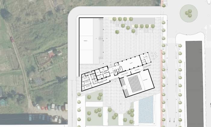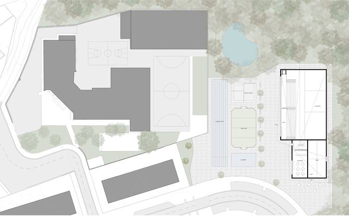 Palotako kirol eta kultur eremuaren proposamena, planoan ikusita. (XS arkitektura estudioa)