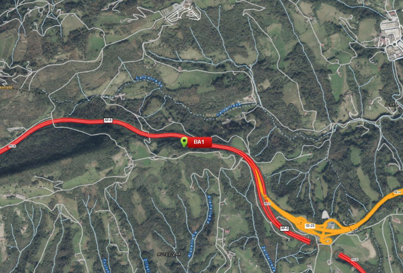 Matxuratutako kamioia dagoen puntua, mapan.