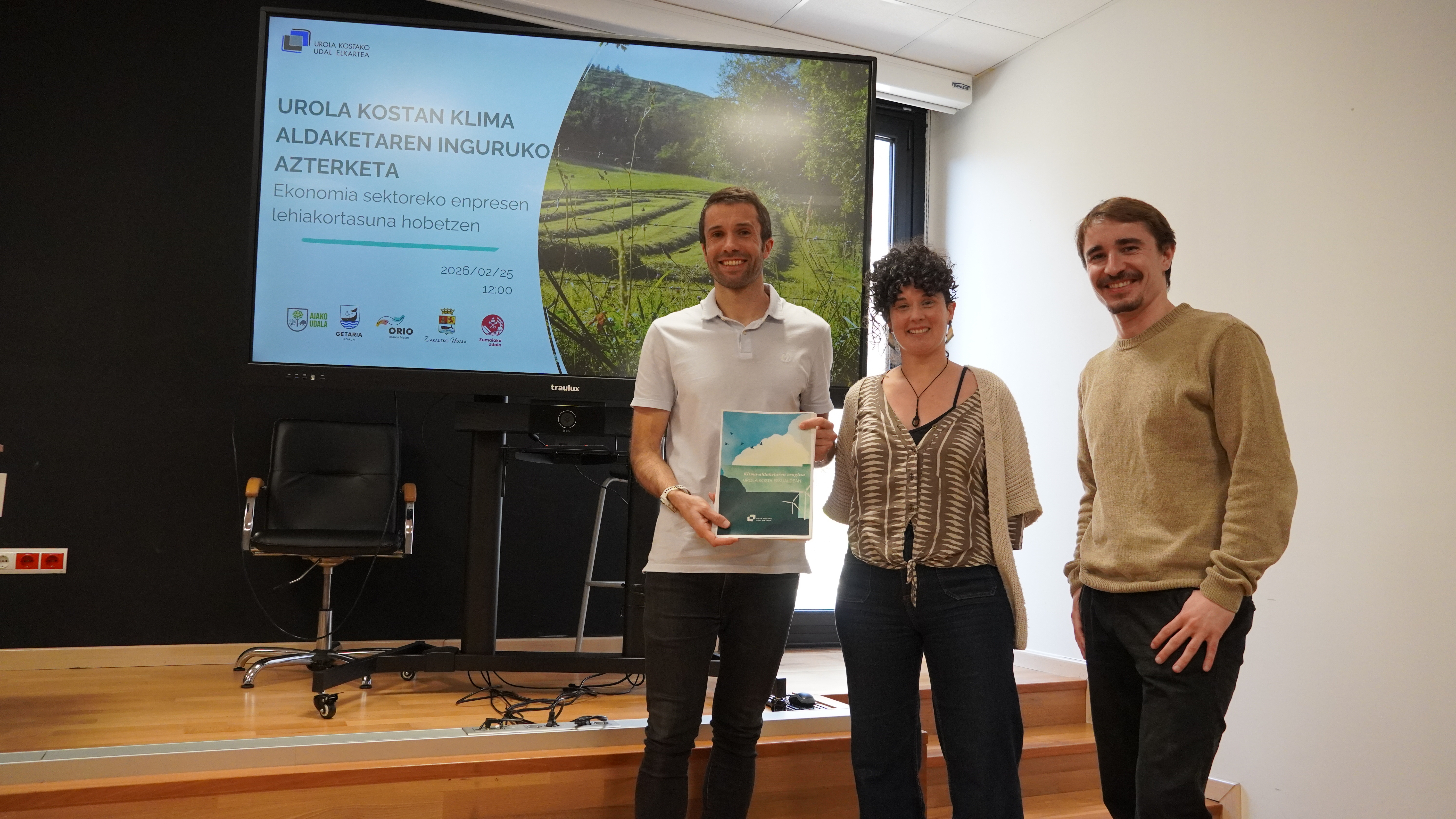 Urola Kostako Udal Elkarteak klima aldaketak eskualdeko herrietan izango duen eragina aztertu du, eta lanketaren emaitzak jendaurrean jarri ditu orain. Azterketa Isladak aholkularitza zerbitzuarekin elkarlanean burutu dute, eta bertako teknikari Aiala Zubietak, UKUEko lehendakari Ion Arozenak eta energia teknikari Eneko Larunbek aurkeztu dute txostena.