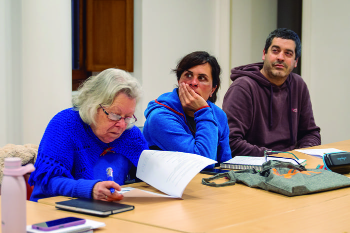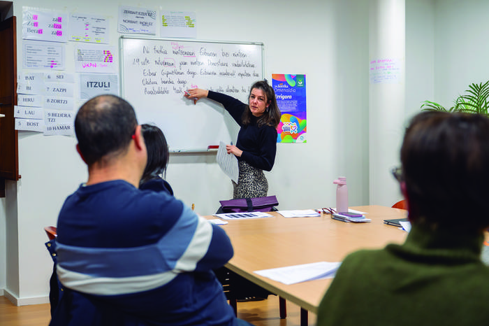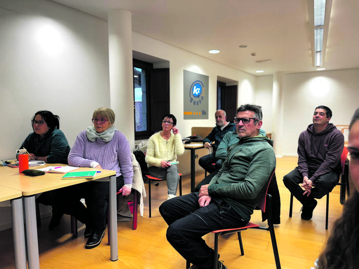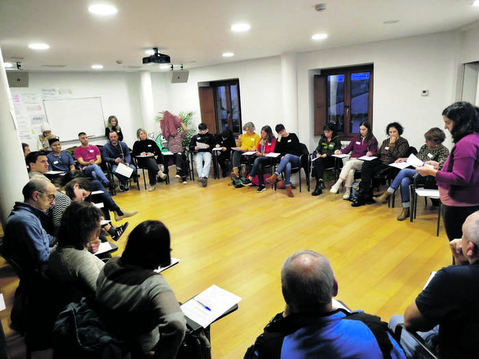 Itxaso Belinchon donostiarrak lau urte daramatza Aian, eta hura ere saioetan parte hartzen ari da. "Beti izan dut euskara ez jakitearen arantza hori, eta ikastaro honen bitartez, hizkuntza ikasten ari naiz. Ez da prozesu erraza, baina poliki-poliki, aurrerantz goaz".