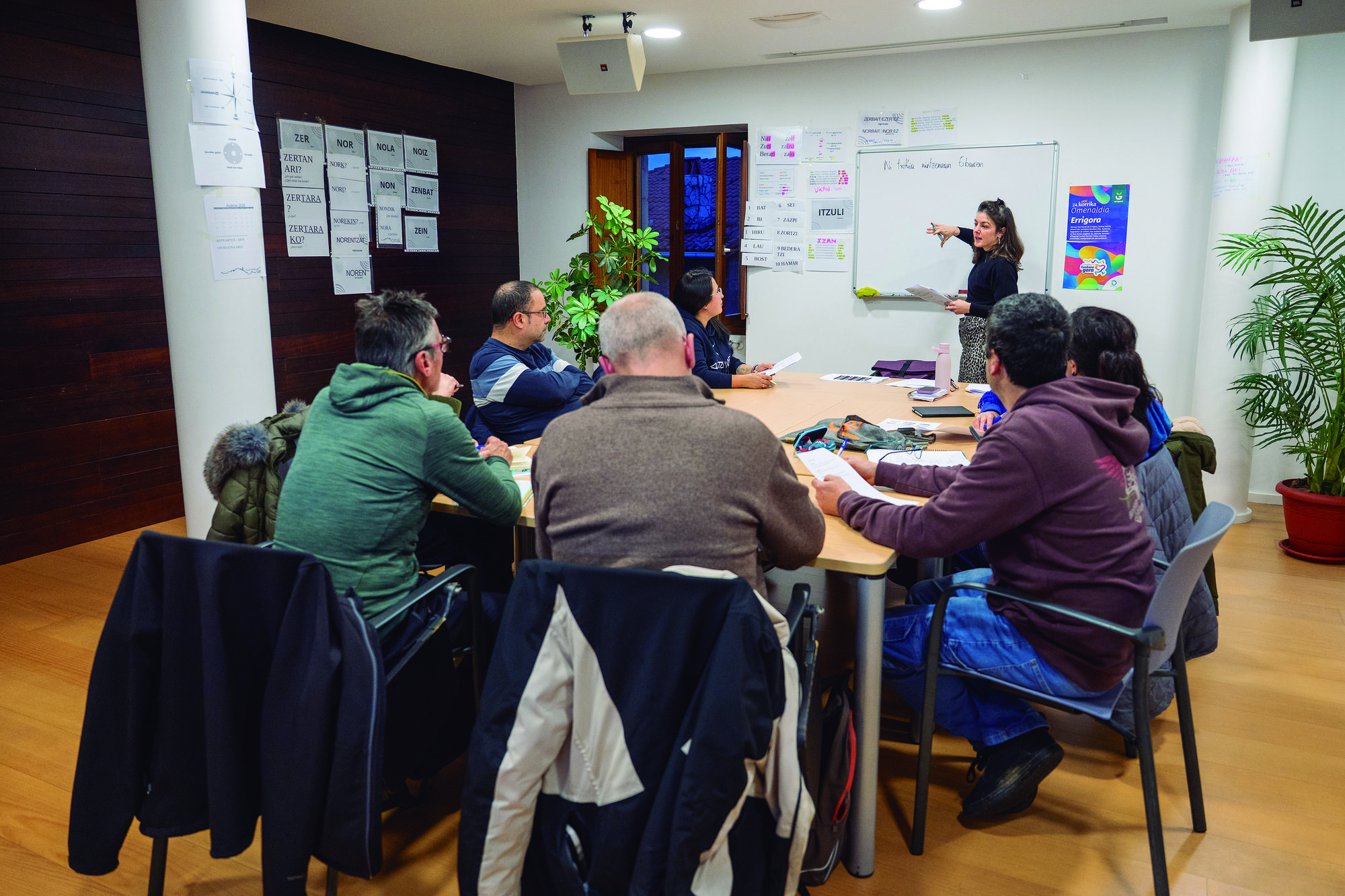 Uler saioak hiru blokez osatuta daude. Lehenengo biek 30 orduko iraupena dute, eta azkenak, berriz, 60 ordukoa. "Saioekin hasi ginenean, asko erabiltzen genituen ikus-entzuneko elementuak, eta apurka-apurka, nire diskurtsoa bakarrik geratzen ari da. Izan ere, zenbat eta euskarri gutxiago erabili, orduan eta belarri gehiago jarri behar dute", azaldu du Arrutik. "Nik beti euskaraz egiten diet, eta beraiek, maila ezberdinak izanik, erosoen sentiarazten diren hizkuntzan erantzuten dute". Profil ezberdinetako partaideak aurki daitezke saio horietan, baina guztiek helburu bera dute: modu batera ala bestera, euskarara gerturatzea.